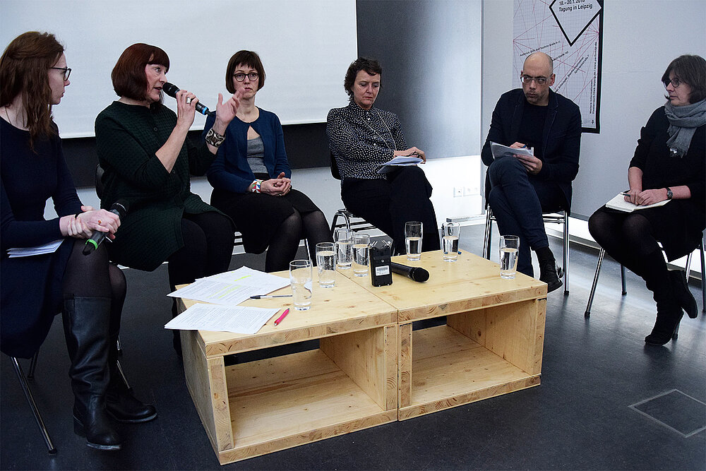 Die fotografische Notiz gibt Einblick in die Veranstaltung an den drei verschiedenen Orten; Dank an die Kooperationspartnerinnen der Tagung: Galerie für Zeitgenössische Kunst, HTWK Leipzig und Residenz des Schauspiel Leipzig auf der Baumwollspinnerei.